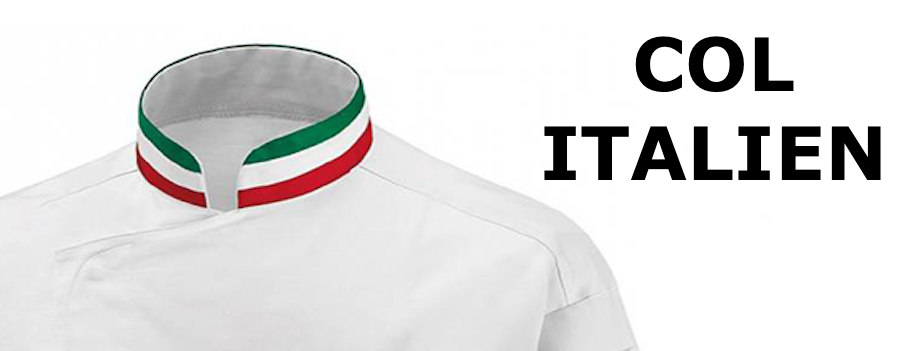 Cette veste de cuisine combine l’élégance et le charme de l’Italie. En blanche, elle arbore le côté classique de toutes les vestes de cuisines mais elle mise sur la différence avec son col aux couleurs du drapeau italien. Elle est parfaite pour les cuisiniers des restaurants aux spécialités italiennes ou encore des pizzaïolos. Afin de rendre ce classique aux couleurs de l’Italie propre à votre image, vous pouvez opter pour une broderie à 6,50€ht uniquement. Avec un large choix de police et de couleurs, soyez créatifs !