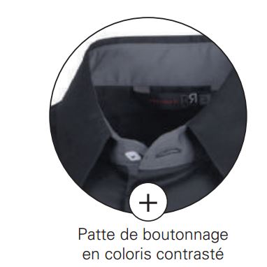 Oui, elle est disponible en blanc ou noir avec un dessous de col et une patte de boutonnage contrastés.
