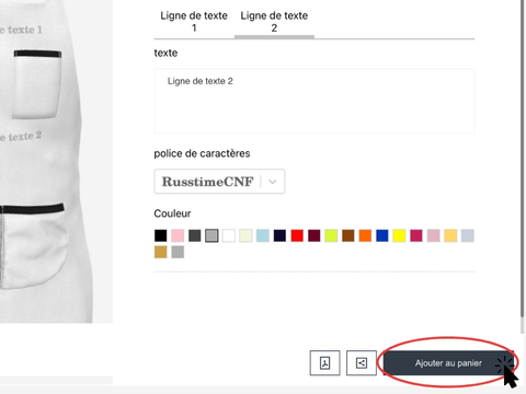 Une fois votre tablier entièrement personnalisé, cliquez sur "ajouter au panier" (en bas à gauche) pour procéder à la commande. La quantité minimale de commande est de trois tabliers, vous avez pouvez aussi augmenter cette quantité selon vos besoins.
