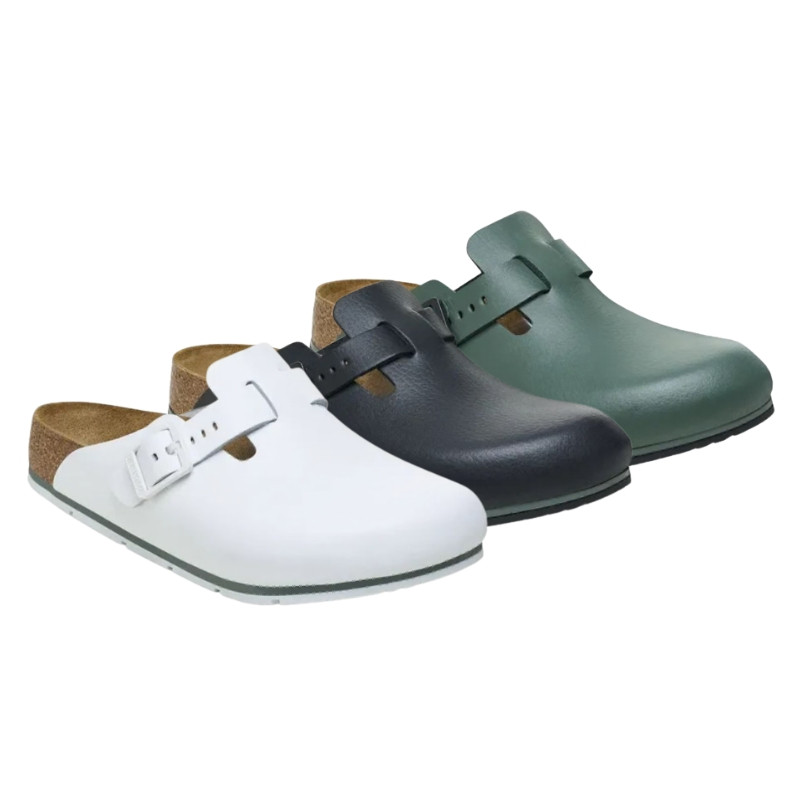 Pensées pour conjuguer confort professionnel et style décontracté, les sabots de travail unisexe Birkenstock Boston PRO Narrow Fit sont parfaites pour les professionnels actifs aux pieds fins.