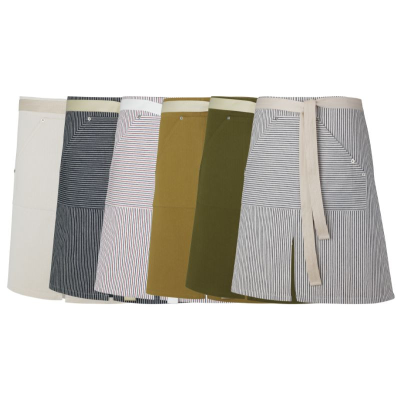 Il mesure 55 cm de hauteur et 82 cm de largeur, idéal pour les environnements de restauration rapide, de service en salle ou de cuisine légère. Les liens en gros grain 100 % polyester à la taille assurent un ajustement confortable. Il dispose d'une grande poche basse à compartiments, renforcée par des rivets inox pour une meilleure durabilité, ainsi que d’une fente de marche facilitant les déplacements.