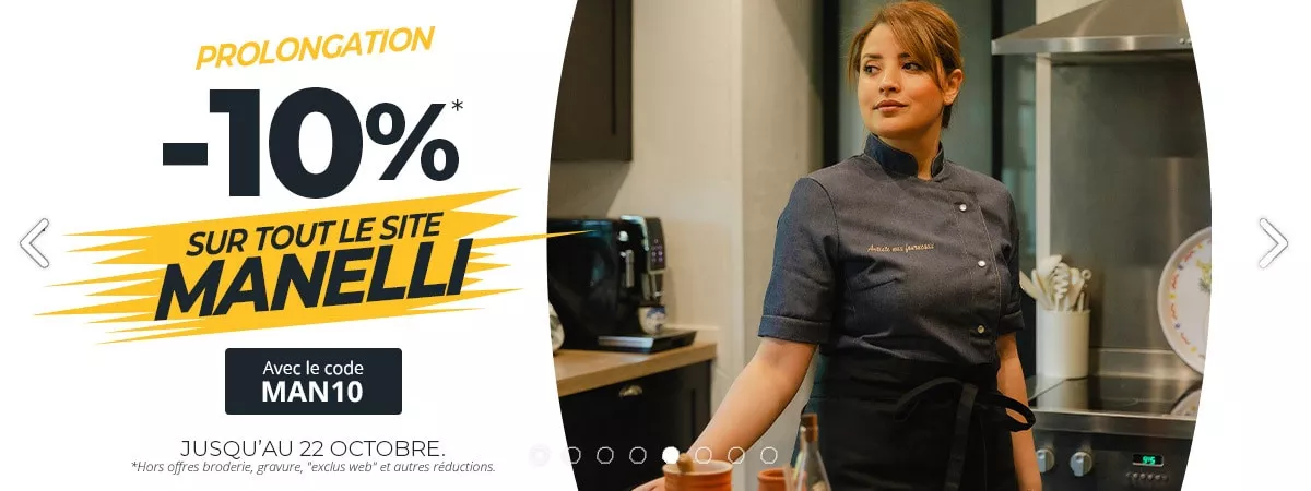 Vous travaillez dans le secteur de la restauration ou de l'hôtellerie et vous recherchez votre tenue de travail ? Vous êtes maître d'hôtel, barman / barmaid, cuisinier, chef cuisinier, commis ou apprenti cuisinier ? Découvrez le large choix de vêtements de cuisine et vêtements de service que Manelli met à votre disposition : veste de cuisine, pantalon de cuisine, tablier de cuisine, tenue de cuisine, chaussures de cuisine, vêtement de cuisine, et autre vêtement d'hôtellerie (tenue de service, veste de service, chaussures de service, gilet de serveur, jupe de serveuse, ...) et tenue de travail pour barman. Retrouvez également notre sélection spéciale couteau de cuisine pour vous équiper avec les meilleures marques de couteaux pro !