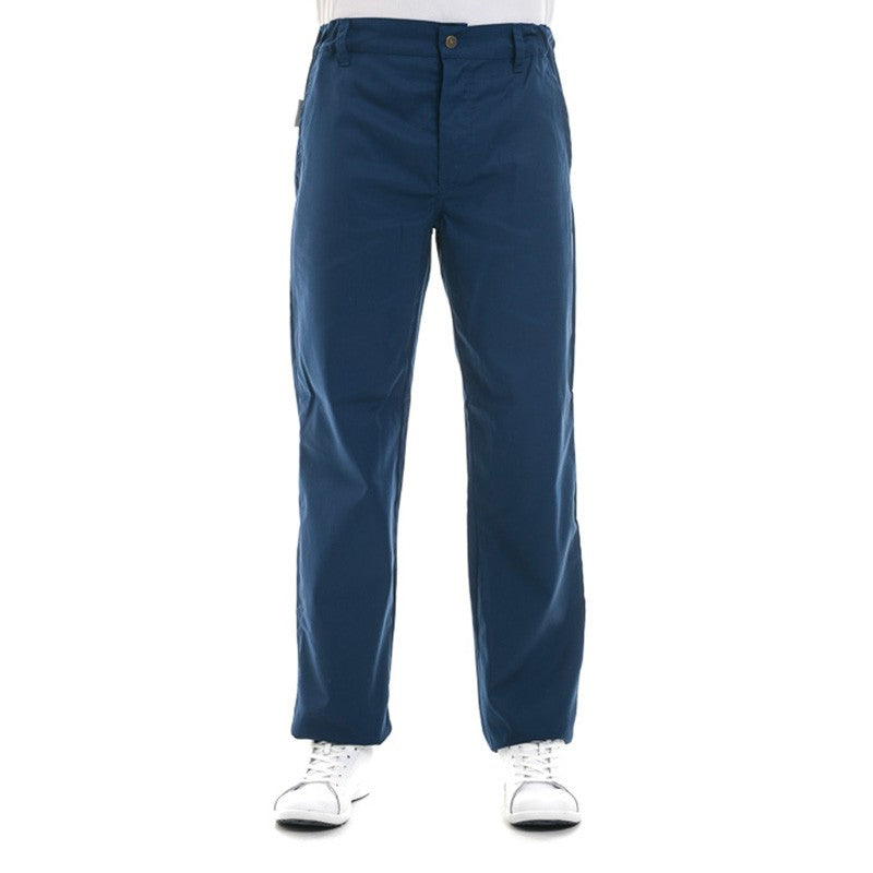 In navy blue, it differs from classic white or black chef's trousers. Resembling dress trousers due to its fitted cut at the knee and its blue color, it's versatile and allows you to stay stylish, even at work.