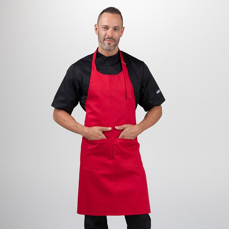 Red apron with double pocket bib – Practical and protective in the kitchen