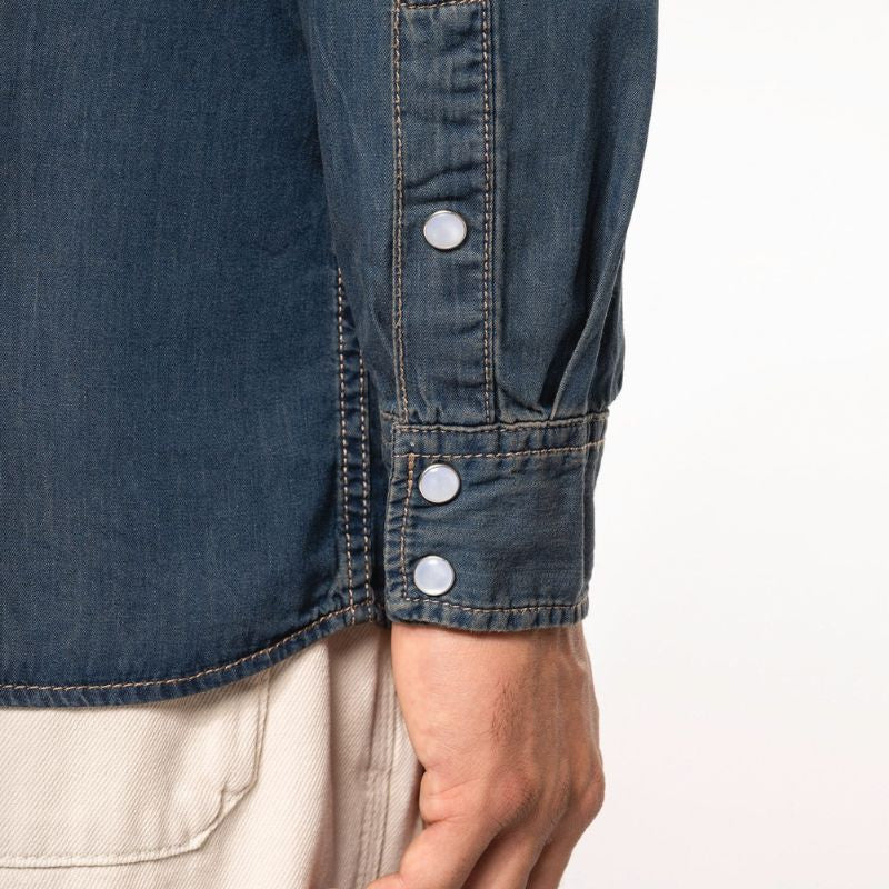 Cette chemise de service en denim est parfaite pour les serveurs, barmans et professionnels de la restauration recherchant une tenue confortable et tendance. Avec son effet délavé, elle apporte une touche vintage élégante, tout en conservant une coupe moderne et ajustée qui met en valeur la silhouette.